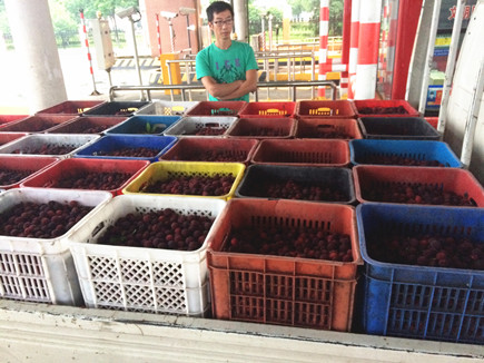 圖為落地楊梅 這兩輛本地牌照的小貨車分別從三門、仙居入口,進入臺州收費所四號、五號車道。檢查人員發(fā)現(xiàn)其所裝載的楊梅均為落地梅,并散發(fā)刺鼻的酸腐味,裝楊梅的筐里漚著一大灘的汁水,司機稱這是收購來做罐頭的。但根據(jù)交通運輸部、國家發(fā)展改革委、財政部《關于進一步完善鮮活農產品運輸綠色通道政策的緊急通知》(交公路發(fā)〔2010〕715號)等有關文件規(guī)定,合法裝載新鮮水果,而不是進行二次加工、或酸敗變質的才可享受免費通行。 這兩車滯留車道一個半小時,并要棄車離開,當班班長張海勇在跟司機講解政策無果后,先后向高速交警指揮中心和110指揮中心報警求助,110把車引導到外廣場。最后在該所所長王小勇和當班班長等人的耐心講解下,至晚上8時,司機認識到這些落地梅將加工成楊梅干和楊梅罐頭的,并非屬于鮮活農產品,不享受國家免費政策,現(xiàn)場分別補交了60元和40元通行費。 由于最近是楊梅成熟季節(jié),運輸楊梅的綠農車逐漸增多,但部分司機心存僥幸,拉落地梅冒充優(yōu)質楊梅,企圖蒙混過關。臺州收費所工作人員在司機不理解綠色通道減免政策,不配合收費工作時,堅定執(zhí)行綠色通道政策的決心,對違規(guī)綠農車要求免費不妥協(xié)不讓步,讓司機沒有可乘之機,真正做到照章收費,應征不漏。 鄭瑛芝
