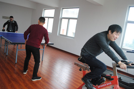 圖為員工在活動室鍛煉