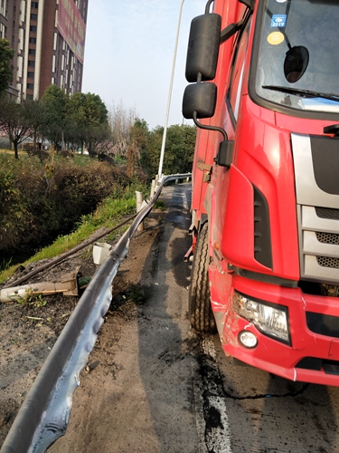 司機(jī)高速犯困 撞向收費站護(hù)欄 3月13日早上,一輛車牌為浙B0H828的大型貨車,在行駛至臺州收費所出口7號車道時,“嘭”地一聲撞向了路邊的護(hù)欄。 所在崗?fù)さ氖召M員立馬將情況報告班長,班長迅速到達(dá)事故車輛旁邊。司機(jī)從駕駛室里下來時還揉搓著眼睛一臉疲乏。由于撞擊,車頭保險杠損壞、護(hù)欄受損。