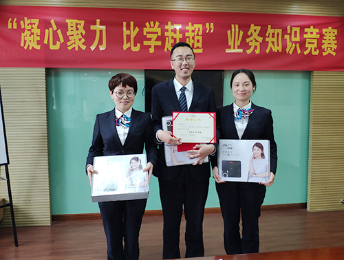 圖為獲勝人員 此次筆試和現(xiàn)場(chǎng)問答的競(jìng)賽方式,測(cè)試了全所人員業(yè)務(wù)知識(shí)、實(shí)踐操作和新業(yè)務(wù)新知識(shí)的掌握程度,激發(fā)了大家比學(xué)趕超的熱情,同時(shí)也讓員工找到自身業(yè)務(wù)水平不足的一面,有利于推動(dòng)規(guī)范化文明服務(wù)更上新臺(tái)階。 楊雅芬