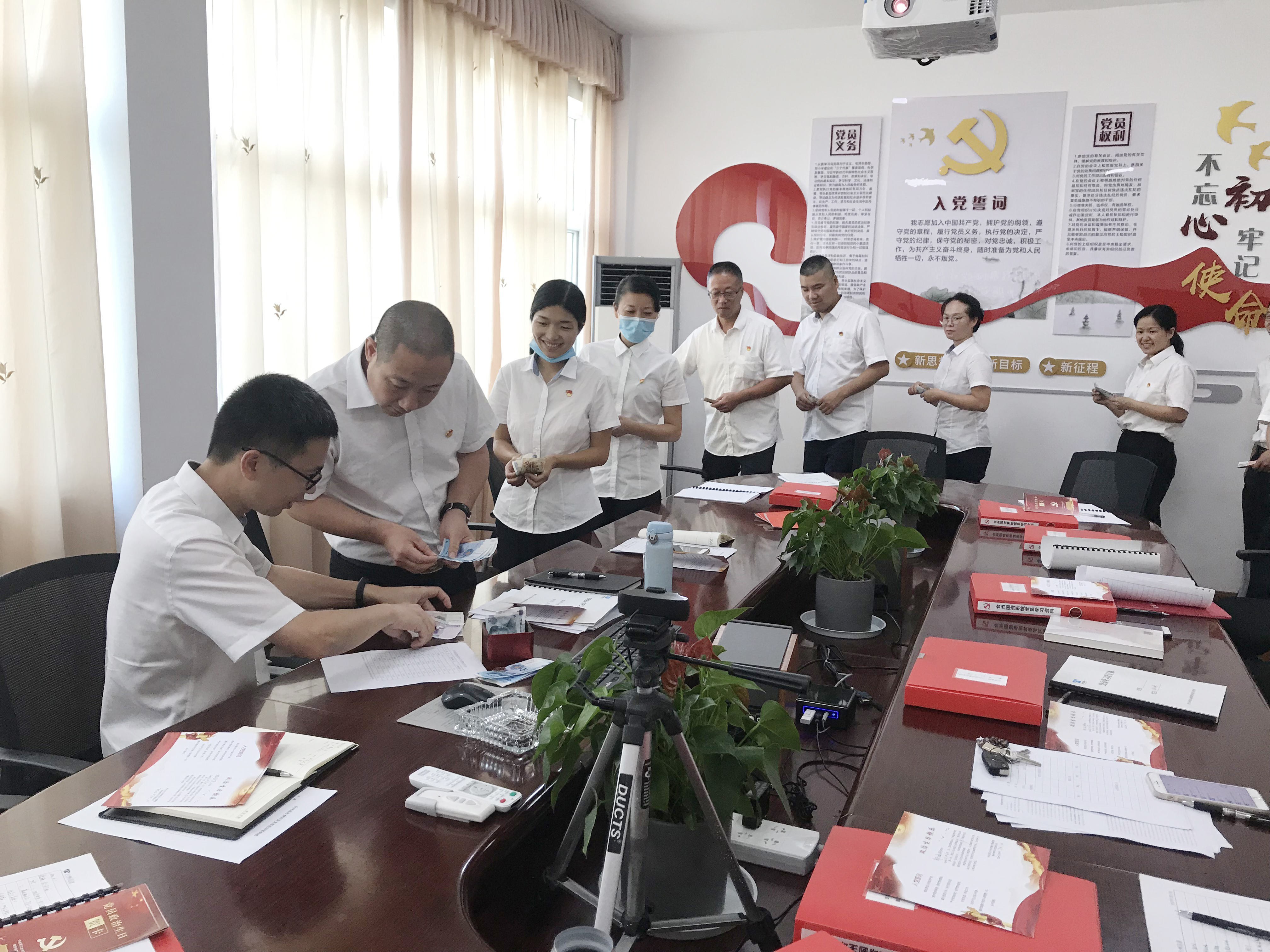 重溫入黨誓詞、重憶入黨經歷 “我志愿加入中國共產黨,擁護黨的綱領……”全體黨員面向黨 旗,整齊站立,高舉右手重溫誓詞,用這種特殊的方式,增強黨性,堅定信念。無論時間過去多久,無論前路如何變幻,都不要忘了自己入黨那天舉起的右臂、許下的誓言。
