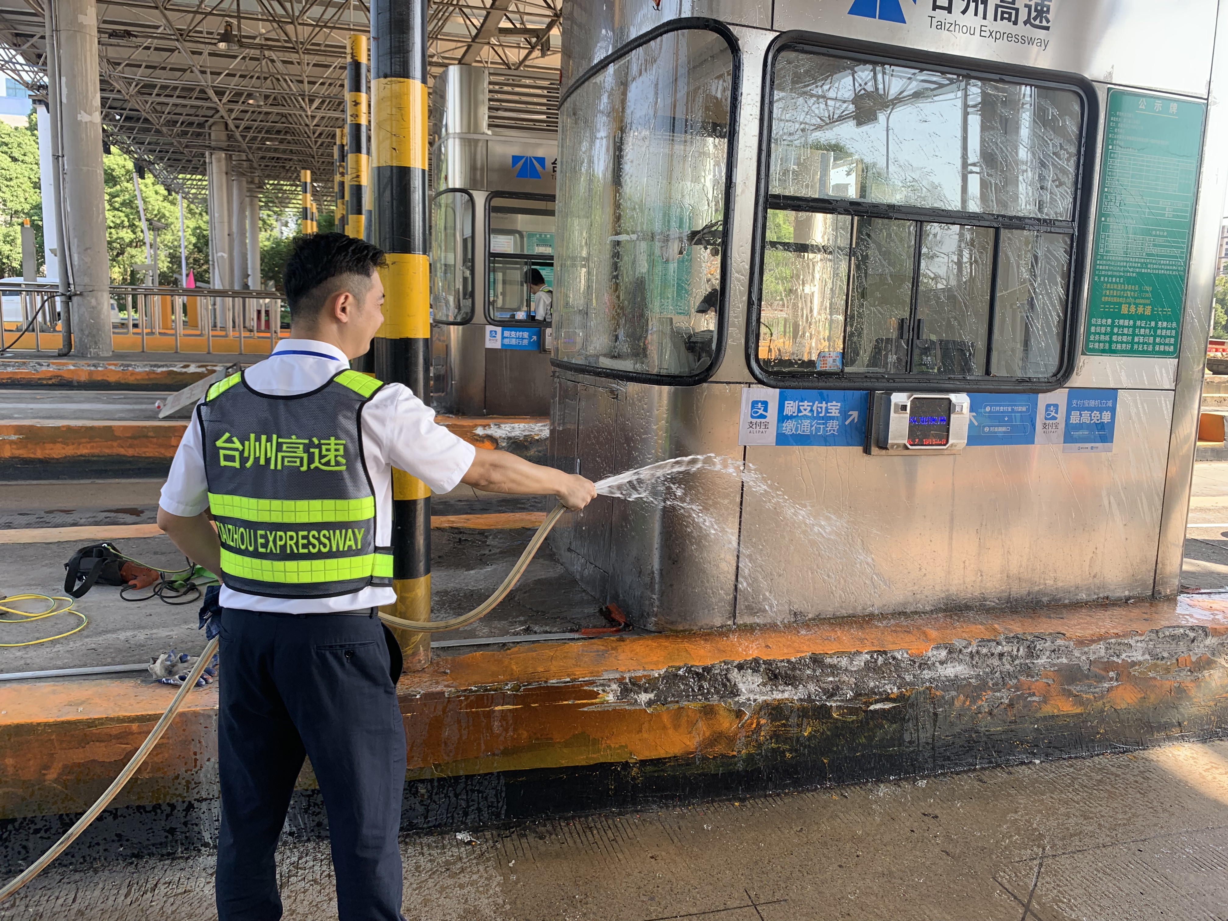 圖為工作人員打掃車道衛(wèi)生 此次環(huán)境衛(wèi)生大掃除本著徹底清理、不留死角的原則,以班組為單位,細(xì)分責(zé)任區(qū),明確保潔要求,限時(shí)清理,全所員工充分發(fā)揚(yáng)不怕苦、不怕累的精神,重點(diǎn)對收費(fèi)站內(nèi)外廣場、車道、崗?fù)?、島頭、邊溝、標(biāo)志標(biāo)牌等區(qū)域及設(shè)施設(shè)備進(jìn)行了一次深度清潔。