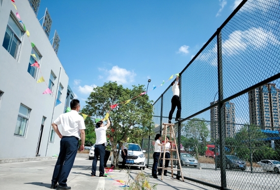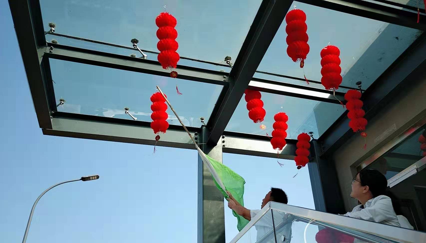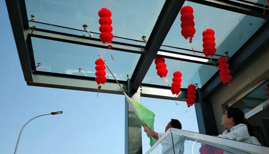 圖為工作人員一起布置收費(fèi)所 在慶祝祖國70周年生日的日子里,最火的顏色就是紅色。為了弘揚(yáng)中華民族傳統(tǒng)文化,溫嶺西收費(fèi)所后勤組早早購置了燈籠、彩旗、五星紅旗,寫好“慶祝祖國70周年華誕”大字等。黨員帶頭,團(tuán)員緊跟,一線收費(fèi)員紛紛參與,在收費(fèi)站大門口、辦公樓、食堂、宿舍等區(qū)域精心用五星紅旗、大紅燈籠、五顏六色的彩旗裝點(diǎn),一抹抹艷麗的國旗紅,成為站點(diǎn)最靚麗的風(fēng)景。明亮的黃、鮮艷的紅,美麗窗口突然亮了起來,到處洋溢著濃濃的國慶氛圍,為過往司乘提供暢、潔、美的節(jié)日行車環(huán)境。 溫嶺西收費(fèi)所后勤組還精心策劃、精細(xì)編排,制作了具有特色、獨(dú)具創(chuàng)意的生日祝福“小視頻”,祝祖國生日快樂! 通過開展弘揚(yáng)愛國精神,喜迎國慶活動(dòng),溫嶺西收費(fèi)所全所工作人員更加不忘初心,砥礪前行,共同慶祝祖國70周年華誕。 鄭霞霞