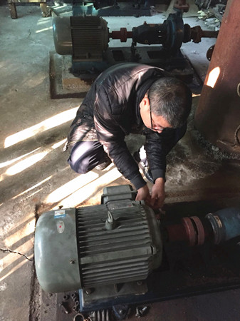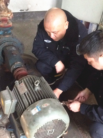 圖為工作人員修理水泵電機現(xiàn)場 因設備比較陳舊,而且原圖紙等資料不全,構(gòu)造原理無從了解,黃土嶺隧道所所長助理金衛(wèi)軍帶領執(zhí)勤隊,一邊推測,一邊根據(jù)水泵工作原理和電器修理經(jīng)驗尋找故障點,對設備可能出現(xiàn)的問題進行反復推敲,逐一排查,最終確定為上水位控制繼電器觸點接觸不良造成導電故障。經(jīng)過對觸點的調(diào)整和修復,以及對軸承部位進行加油和電機、水泵平衡重新調(diào)節(jié)后,設備之前出現(xiàn)的電機震動、聲音異常現(xiàn)象和無法自動進水等問題被一一解決,消防水泵恢復正常運作。 此次檢修工作不僅及時消除了安全隱患,確保設備隨時處于良好的待命狀態(tài),在檢修的過程中,也為隊員開展了一次良好的技術(shù)培訓。 毛譯聆