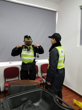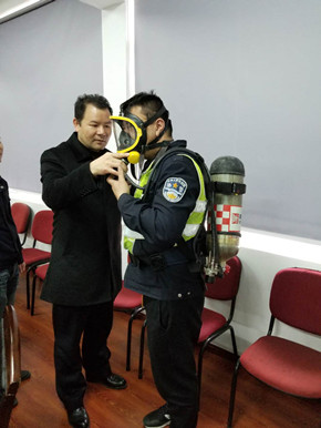 培訓(xùn)中,陶文輝講解了“高速隧道火災(zāi)特點(diǎn)”及呼吸器、防化服的使用方法及相關(guān)要求。話題開啟后,隊(duì)員們紛紛參與討論,爭相發(fā)言,講述各自在隧道事故處理中施救和應(yīng)對(duì)的經(jīng)歷與心得,交流平日巡查中所需注意的事項(xiàng),互相提醒工作中的不足,并針對(duì)實(shí)際問題提出了許多建設(shè)性意見。同時(shí),在主講人的現(xiàn)場(chǎng)演示下,參訓(xùn)人員逐個(gè)“以身試法”,進(jìn)一步熟悉和掌握了防毒面罩的穿戴方法。