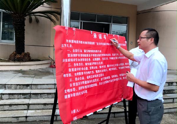 圖為公司副總經理章海峰在承諾書上簽名