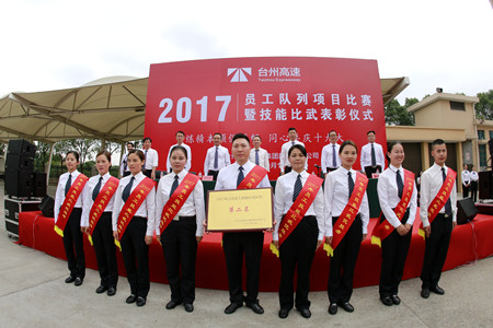 “立正、向后轉(zhuǎn)、齊步走、正步走……”10月19日下午,臺州收費所管理房廣場上,伴隨著一聲聲嘹亮的口號,傳來一陣陣整齊有力的步伐聲。6支收費所、隧道所代表隊,正在場上進(jìn)行緊張的隊列比賽。最后經(jīng)過激烈角逐,溫嶺西收費所代表隊獲得了隊列項目的第一名。隨后,集團舉行了以“煉精本領(lǐng)保暢通、同心共慶十九大”為主題的員工技能比武總結(jié)表彰儀式,對在技能比武獲獎的員工和集體進(jìn)行了隆重表彰!