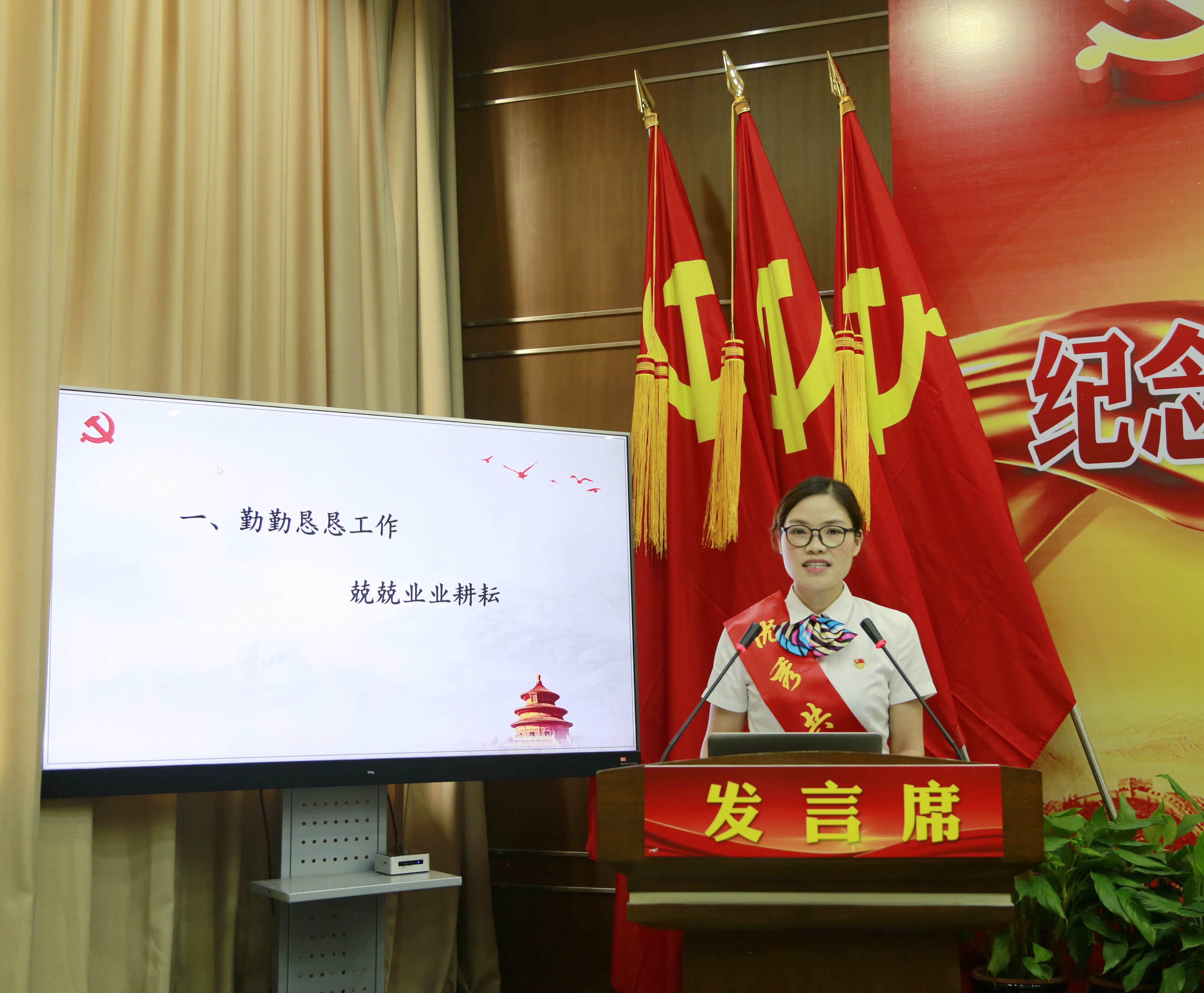 一個支部一座堡壘,一名黨員一面旗幟。6月份以來,集團各條戰線對照標準共評出12位先進共產黨員,3位優秀黨務工作者及2個先進支部,并推選代表進行先進事跡報告,以此方式慶祝黨的生日。行政黨支部曾莉莉“平凡崗位 赤誠之心 奉獻無悔”,臺州收費所黨支部牟妲“機遇與挑戰同在 責任同收獲并存”,黃土嶺隧道所黨支部李海福“加強自身建設 鍛造過硬隊伍”,臺州南黨支部王益民“打造四型支部為黨旗添彩”。講臺上,他們以樸素的語言、真摯的感情和生動的細節講述了自己的真實故事,彰顯了高速人對黨忠誠、信念堅定的可貴品質,苦干實干的務實作風和無私奉獻、忘我工作的敬業精神,也深深感染了現場每一位聽眾。黨徽映我心,旗幟在身邊。在旗幟的召喚引領下,會場氣氛熱烈,現場響起一次又一次熱烈的掌聲。