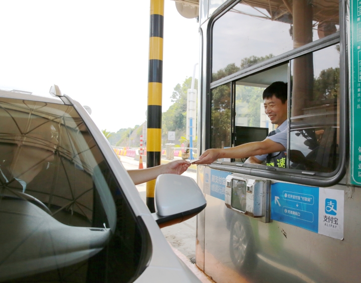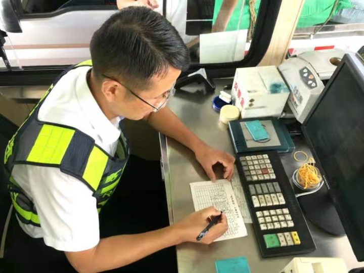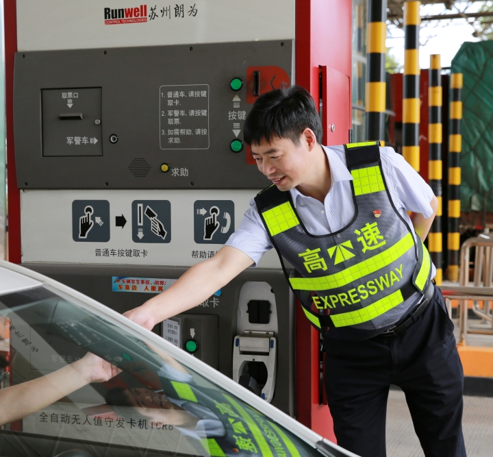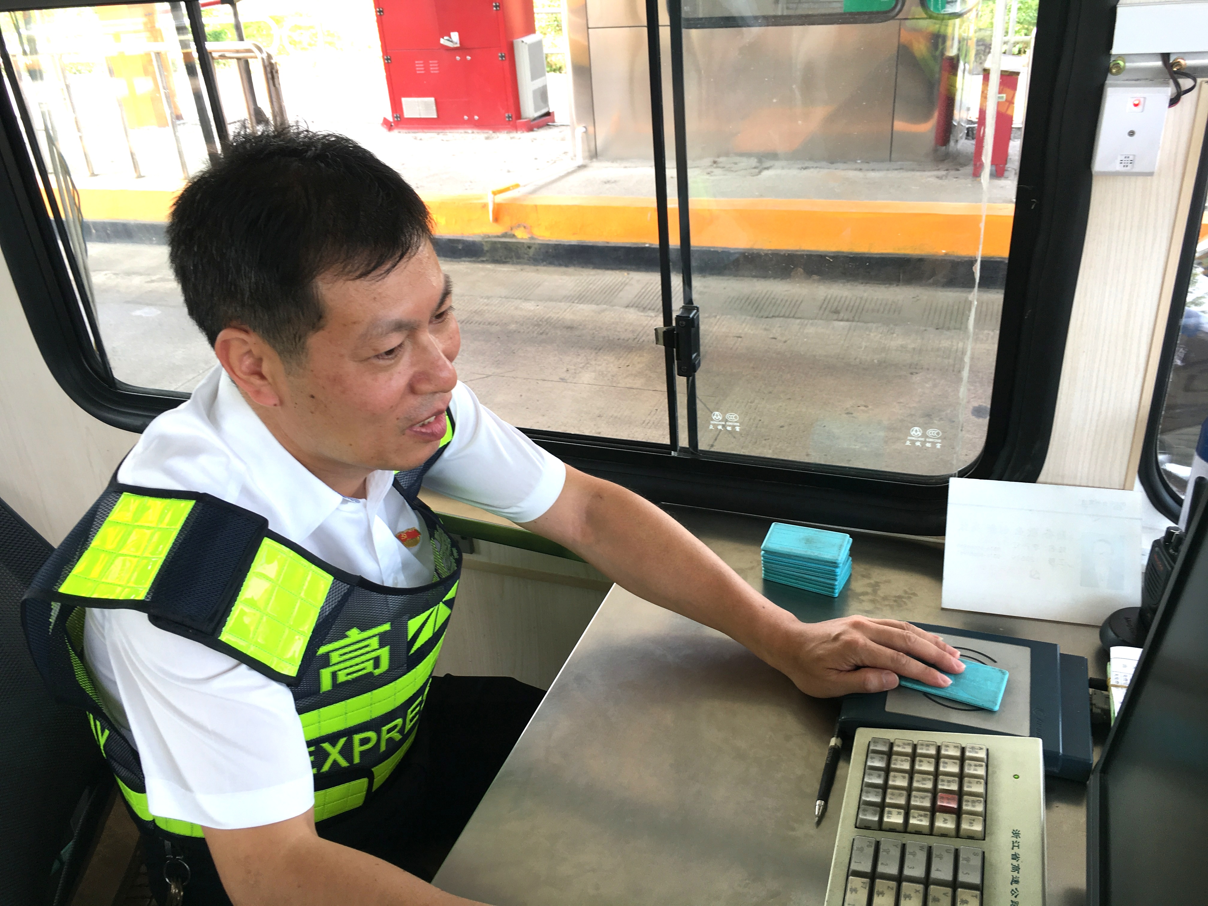 而在對面發(fā)卡的安全總監(jiān)項(xiàng)同富正襟危坐,等待著車子的駛?cè)耄?/span>“記住動作就忘記微笑,笑起來又忘記要說什么......真有點(diǎn)手忙腳亂的,做好收費(fèi)員,不容易。”