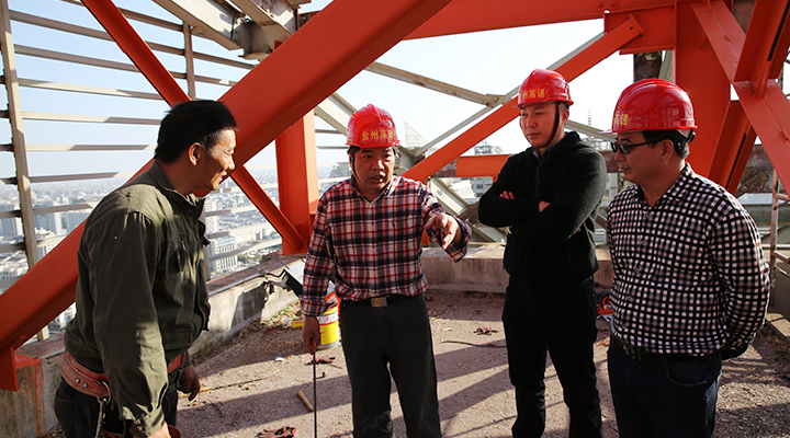 集團(tuán)安全總監(jiān)項同富檢查天和大廈除銹施工 11月15日下午,集團(tuán)安全總監(jiān)項同富在辦公室、房產(chǎn)公司相關(guān)人員的陪同下,到天和大廈樓頂鋼架除銹施工現(xiàn)場檢查施工進(jìn)展和安全工作。 集團(tuán)總部天和大廈樓頂鋼架跨度大,高低水平不一致,很難搭建大范圍的防護(hù)網(wǎng)及腳手架等施工輔助工具,也無法采用大型機(jī)械打磨除銹的方式除去表面的銹層,只能靠手工和電動角磨機(jī)除銹。施工人員常常進(jìn)行高空作業(yè),安全隱患大。
