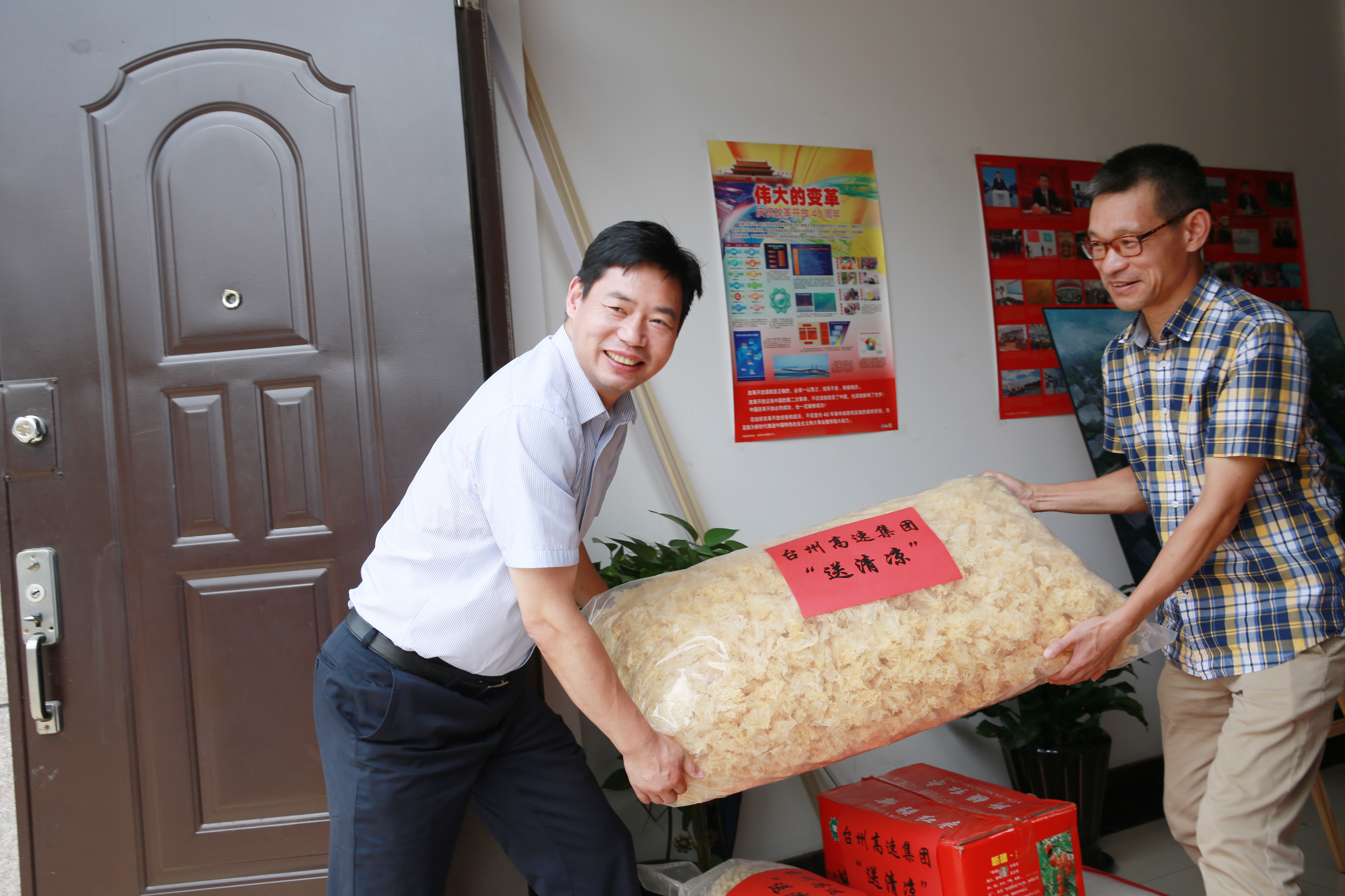 沁人心脾|臺州高速集團開展“夏日送清涼”活動 7月15日上午,臺州高速集團開展“夏日送清涼”活動。集團黨委書記、董事長、總經理陳文波,副總經理陳保衛、羅小將、章海峰、工會主席項同富兵分兩路,帶領送清涼慰問組同志,深入高速交警、路政、匯通養護公司、各收費所、隧道所、中心、子公司等單位看望慰問值守人員并送去慰問品,向冒著高溫酷暑辛勤工作的工作人員表示敬意和慰問。感謝廣大員工在高溫下堅守崗位、辛勤勞動,集團領導親手送上防暑降溫的紅棗、綠豆、蓮子、飲料等物資,為在炎炎夏日中堅持工作的一線廣大人員送去了絲絲清涼。