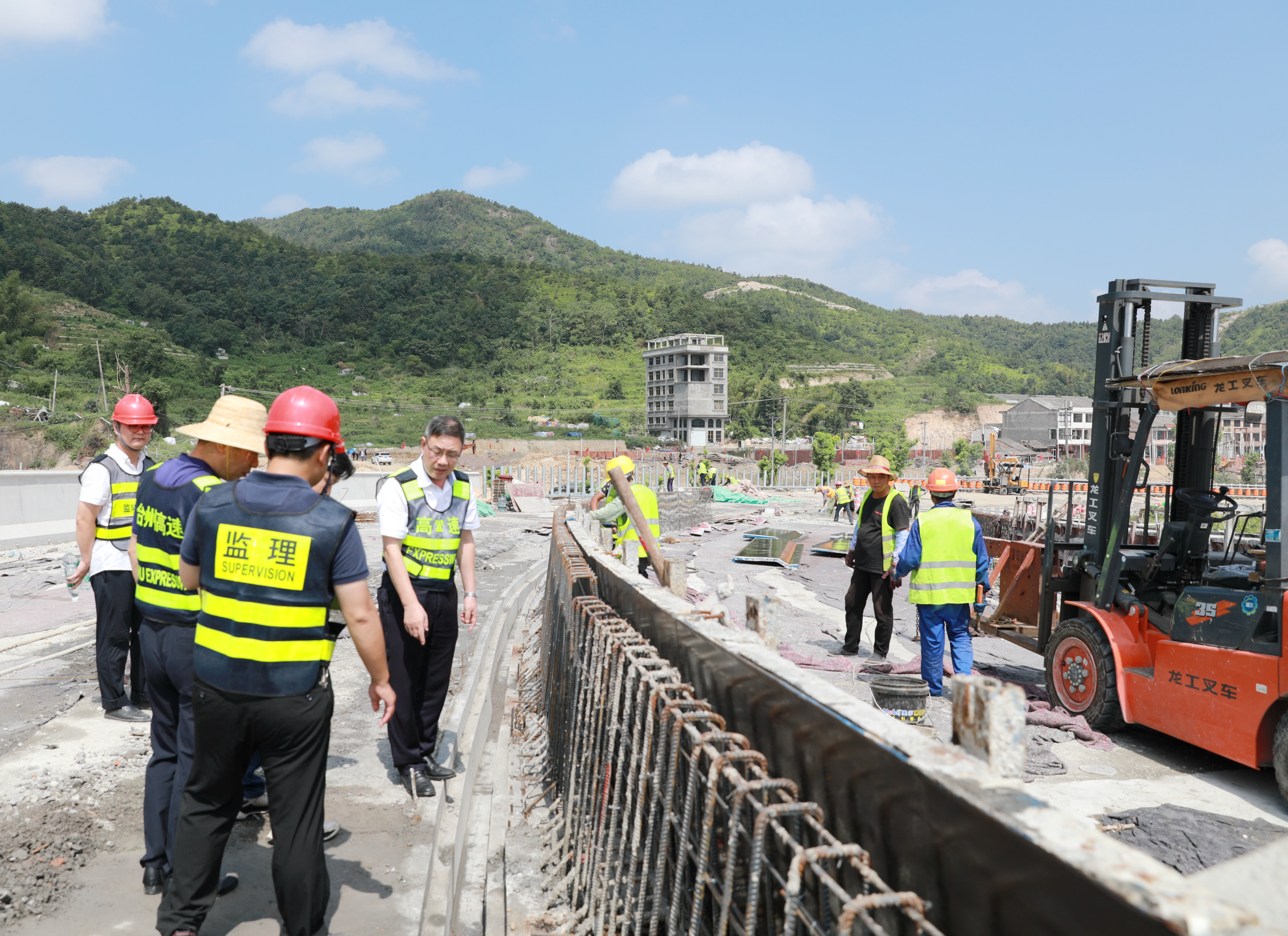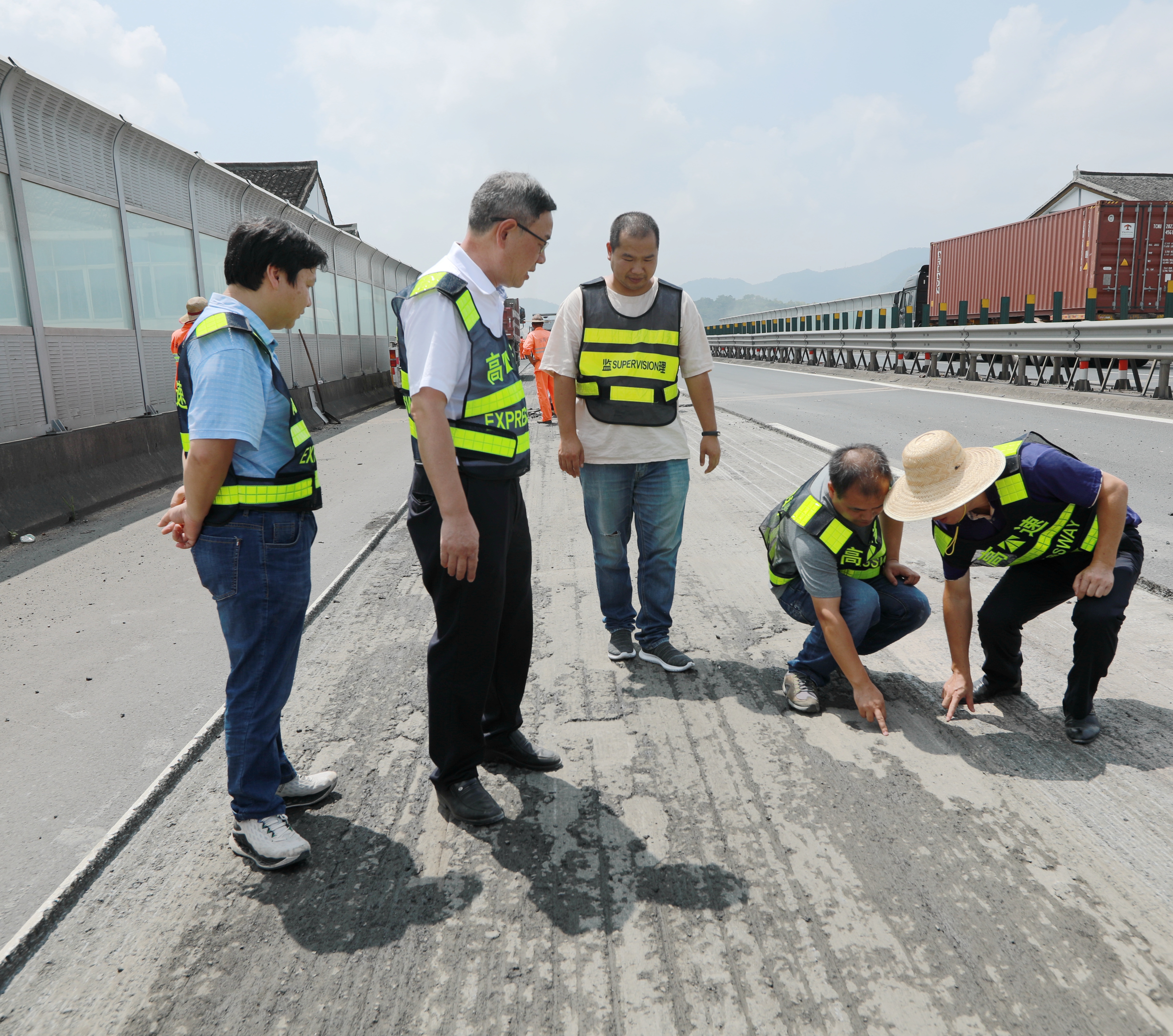 上午,臺州高速集團黨委書記、董事長、總經(jīng)理陳文波,公司黨委委員、總工程師江輝,以及工程部相關(guān)人員一起來到公司所轄路段,檢查施工進展情況。