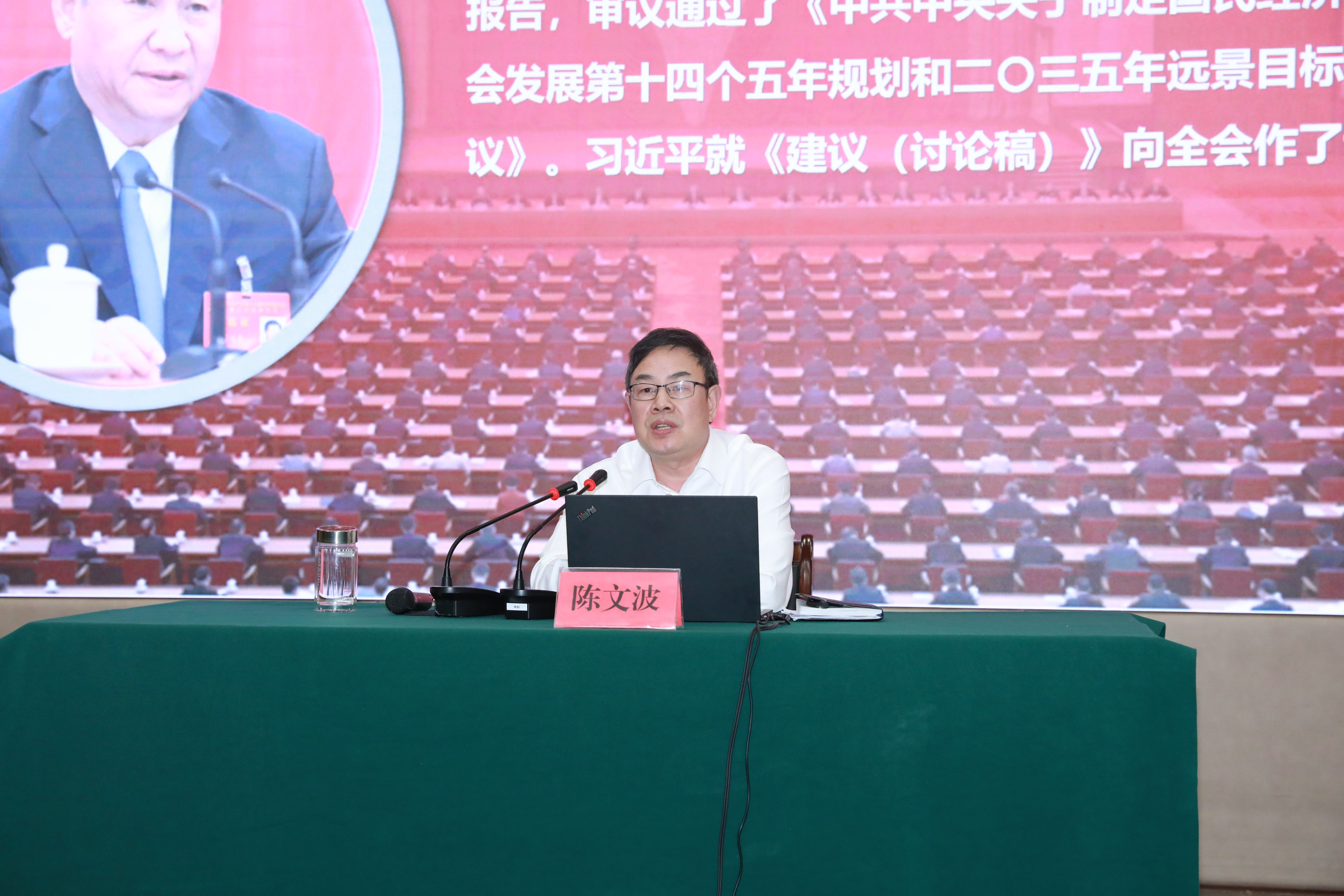 陳文波指出,黨的十九屆五中全會是在我國即將全面建成小康社會、實現第一個百年奮斗目標,乘勢而上開啟全面建設社會主義現代化國家新征程、向第二個百年奮斗目標進軍之際召開的一次具有全局性、歷史性意義的重會議。深入學習宣傳貫徹黨的十九屆五中全會精神,是當前和今后一個時期的重要政治任務。