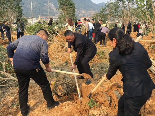 圖為植樹現(xiàn)場 3月13日上午,臺(tái)州高速房產(chǎn)黨支部開展“守護(hù)青山碧水”主題黨日活動(dòng),組織黨員干部到黃巖“兩山”綠色基地(江心嶼苗圃公園)植樹,為臺(tái)州大地再添新綠。