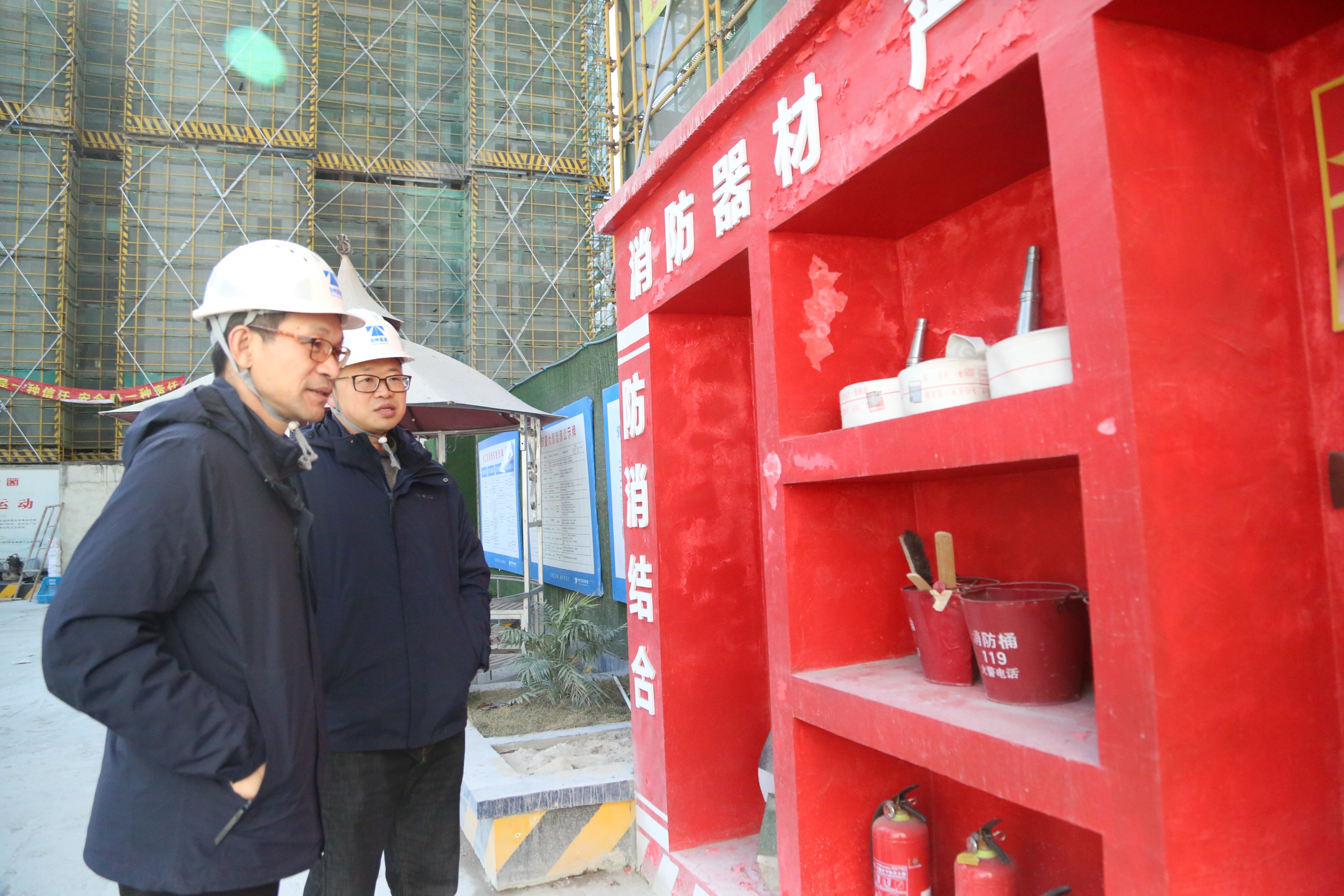 圖為檢查組在玖璽項(xiàng)目工地檢查消防設(shè)施 檢查組一行來(lái)到了高速玖璽逸墅銷(xiāo)售展廳,對(duì)展廳內(nèi)舉辦的各種“迎新年活動(dòng)”表示肯定,同時(shí)提醒銷(xiāo)售部要跟進(jìn)配套安全措施,近日寒潮來(lái)襲,更要注意防寒防凍。 項(xiàng)淑珍