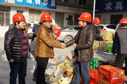 上圖為慰問現場 每到一個標段,慰問組都詳細了解項目當前施工情況以及春節期間的工作安排,為他們送上了慰問品,對于那些臨近春節仍奮戰在工地一線的工人們,慰問組代表市政公司表達了衷心的感謝,并提早向全體工作人員致以新春佳節的祝福。 鐘彪指出,內環路(黃巖段)在2017年度建設時間緊,任務重,各項目部在搶抓工程進度的同時要注重安全生產,關心工人生活,保障工人人身和財產安全,特別是過年期間,各項目部負責人和值班人員要保持24小時通訊暢通,保證各項工作正常運轉,確保平安過節。 張琛